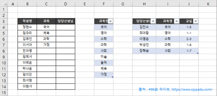 EX) =INDIRECT( "선생님["& $D$3 &"]" )